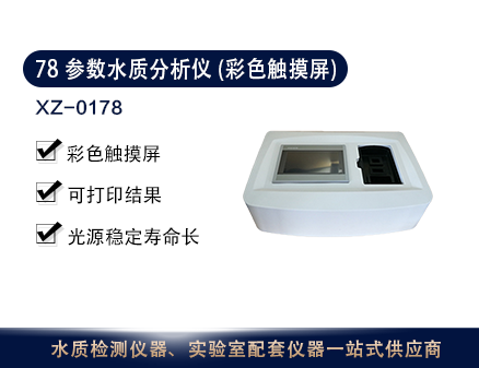 XZ-0178 78參數(shù)自來(lái)水/污水檢測(cè)儀可用于測(cè)定飲用水中的濁度、色度、懸浮物、余氯、總氯、化合氯、二氧化氯、溶解氧、氨氮、亞硝酸鹽、鉻、鐵、錳、銅、鎳、鋅、硫酸鹽、磷酸鹽、硝酸鹽氮、陰離子洗滌劑、臭氧等78參數(shù),一臺(tái)儀器囊括自來(lái)水、污水、循環(huán)水的檢測(cè),性價(jià)比極高。本儀器可廣泛用于水廠、食品、化工、冶金、環(huán)保行業(yè)等部門(mén),是實(shí)驗(yàn)室的標(biāo)配儀器。